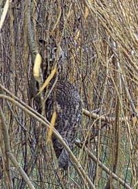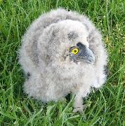 Baby Kautz zu früh aus dem Nest gefallen. Kautzeltern saßen im Baum, wachend, über ihm. |